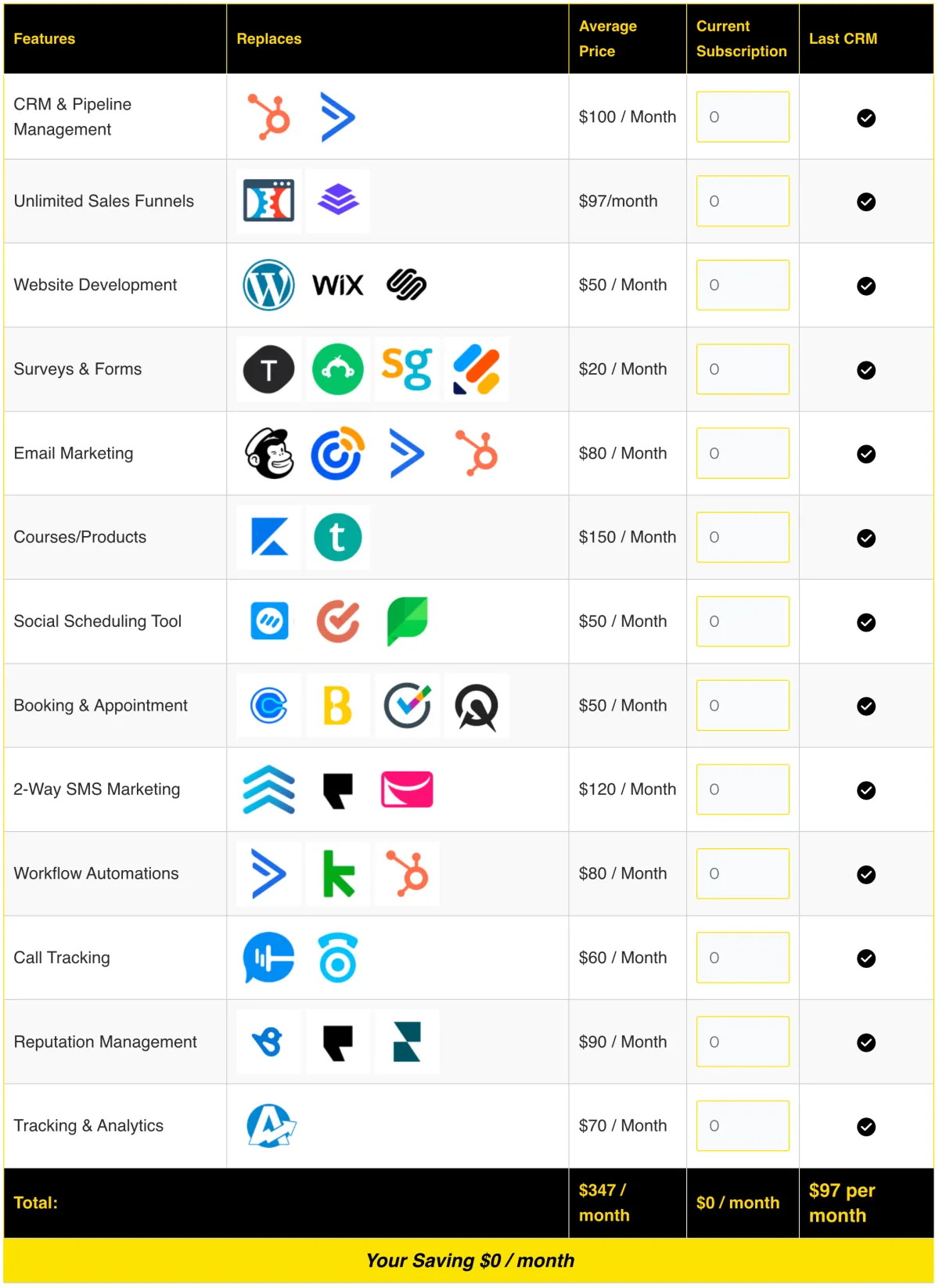 The calculator allows your potential client to work out the total price of their current subscriptions.